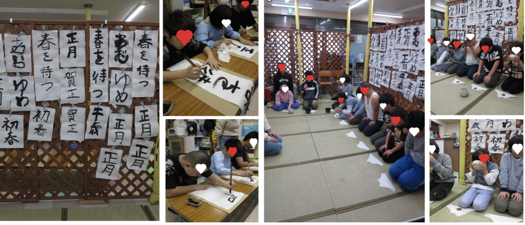 2026年、子供たちの初出です。近隣の氏神様にお参り。そして書初め会。みんな丁寧に筆を扱って、力強く思いを込めて筆を走らせていました。午後からは、初釜です。お茶の素晴らしさは、静寂を楽しめること・人を思いやり理解する心が養えます。今年もみんなのマナーは抜群でした。もう家族で、各地の野点などに参加しても恥ずかしくないものがあります。